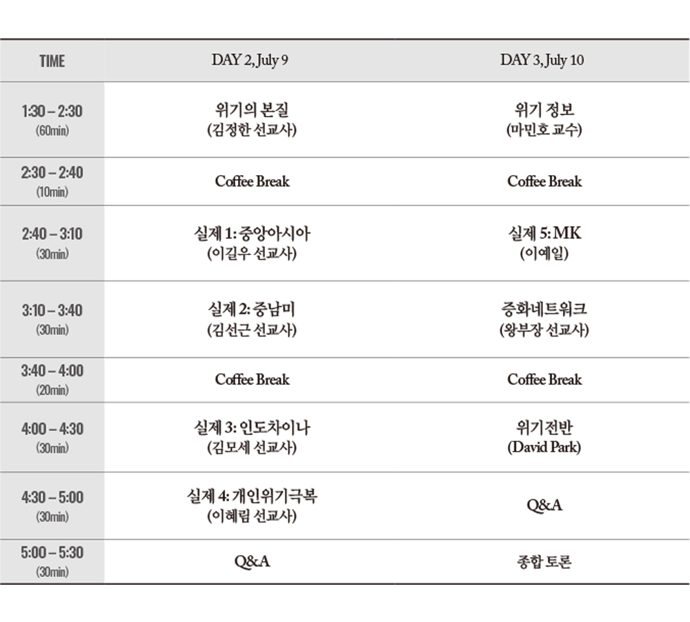 한 조사에 따르면, 많은 선교사들이 만성적으로 높은 수준의 스트레스 환경에서 살고 있다고 한다. 이런 환경 속에서 우리 자녀와 학생들은 얼마나 안전하게 자라고 있을까? 교육 선교를 하는 선교사들은 학생들에게 잠재적으로 나타날 수 있는 학대나 괴롭힘, 건강하지 못한 관계를 예방하고, 학교 구성원이 서로를 존중하는 건강한 학교 커뮤니티를 조성하는 것이 중요하다. 우리는 어떻게 자녀와 학생들을 선교지의 잠재적인 위험으로부터 안전하게 지킬 수 있을까? 보다 건강한 환경을 조성하는 것은 학교, 가정, 선교단체가 함께 협력하여 이루어져야 한다. 선교지에서 자녀와 학생들을 지원하고 보호하는 전략이 없다면 갑작스런 위기 상황에서 대응하기 어렵다. 그러나 잠재적인 위험 요소를 미리 파악하고 이에 대한 전략을 세워 둔다면 자녀/학생들에게 일어날 수 있는 잠재적인 위험을 효과적으로 예방할 수 있다. 이번 강의에서는 선교지와 선교지 학교 현장에서 우리 자녀와 학생들을 보호해야 하는 이유와, 이를 어떻게 전략적으로 실천할 수 있는지에 대해 논의할 것이다.