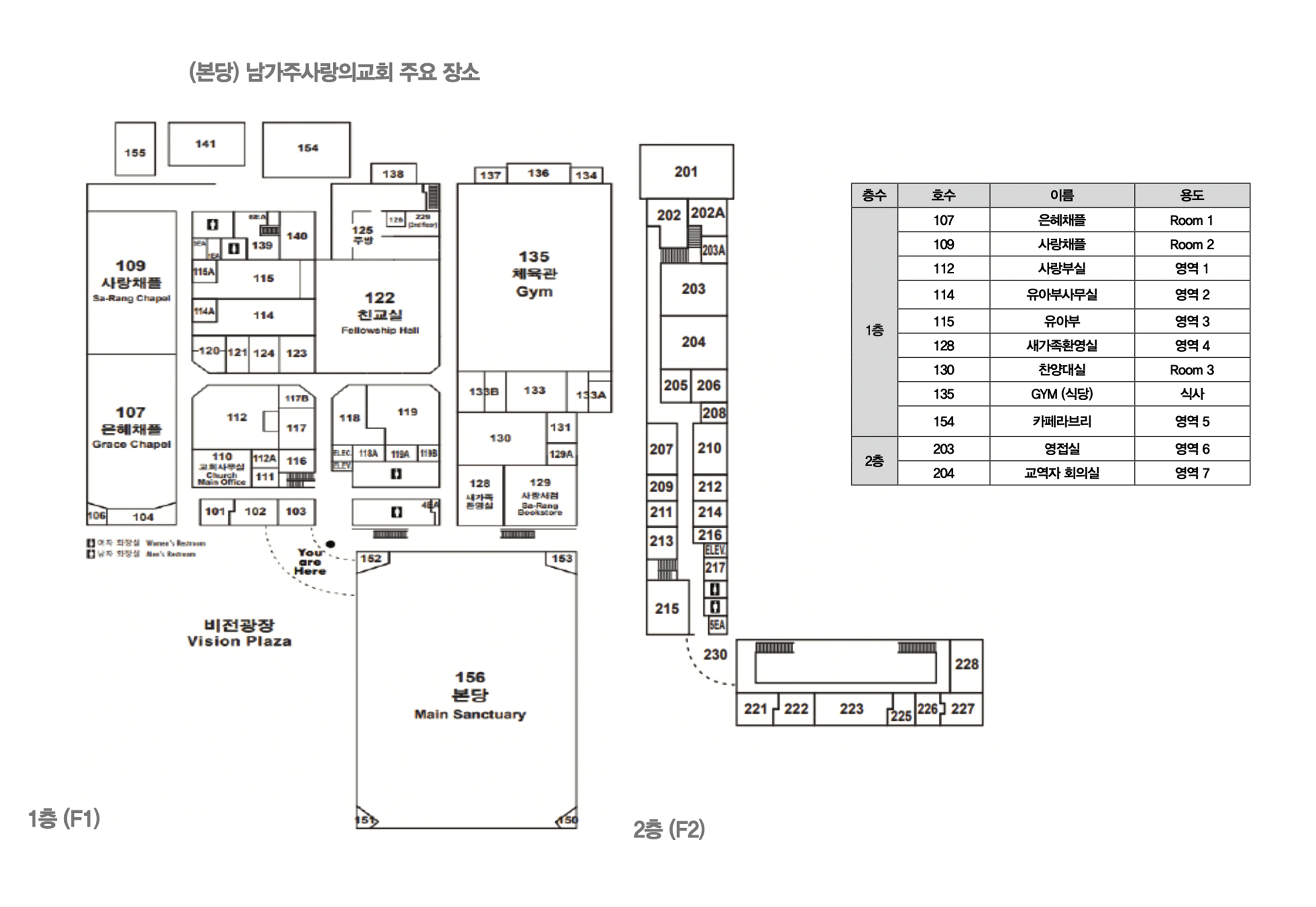 - 다치거나 건강의 이상 시 교회에 있는 응급실을 이용하실 수 있습니다.