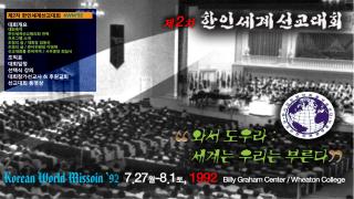 1992년 2차 KWMC 한인세계선교대회 영상자료모음입니다. 영상 우측상단 리스트를 클릭하면 전체 플레이리스트를 볼 수 있습니다.