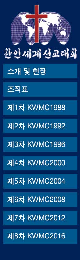기독교 한인세계선교협의회(Korean World Mission Council for Christ)는 북미주 한인교회가 하나님의 은총과 축복 가운데 성장과 부흥을 거듭함을 감사드리며 주 예수 그리스도의 2,4지상명령(마 28:19-20)인 세계복음화에 총력을 기울여야 할 시대적 사명을 절감하고 1988년 7월 25일부터 30일까지 빌리 그래함 목사의 적극적 후원을 받아 시카고 윗튼대학 빌리 그래함 센터에서 제1차 한인세계선교대회를 개최하며 한국교회 선교사상